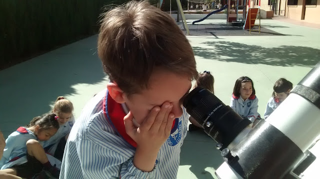 Además con un filtro solar vimos el sol y una mancha solar muy claramente.